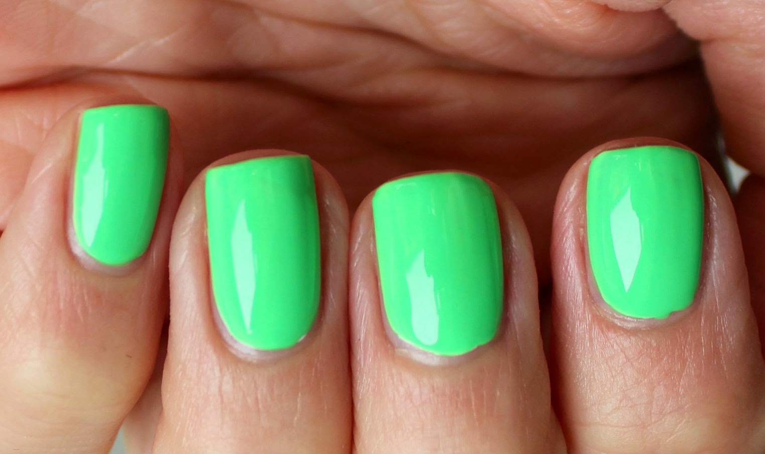 OPI You Are So Outta Lime! was released with the Neon collection. I wouldn't say it's neon though. It's bright, but not that bright. It's very pretty and a great color for summer. This is two coats on top of white.
